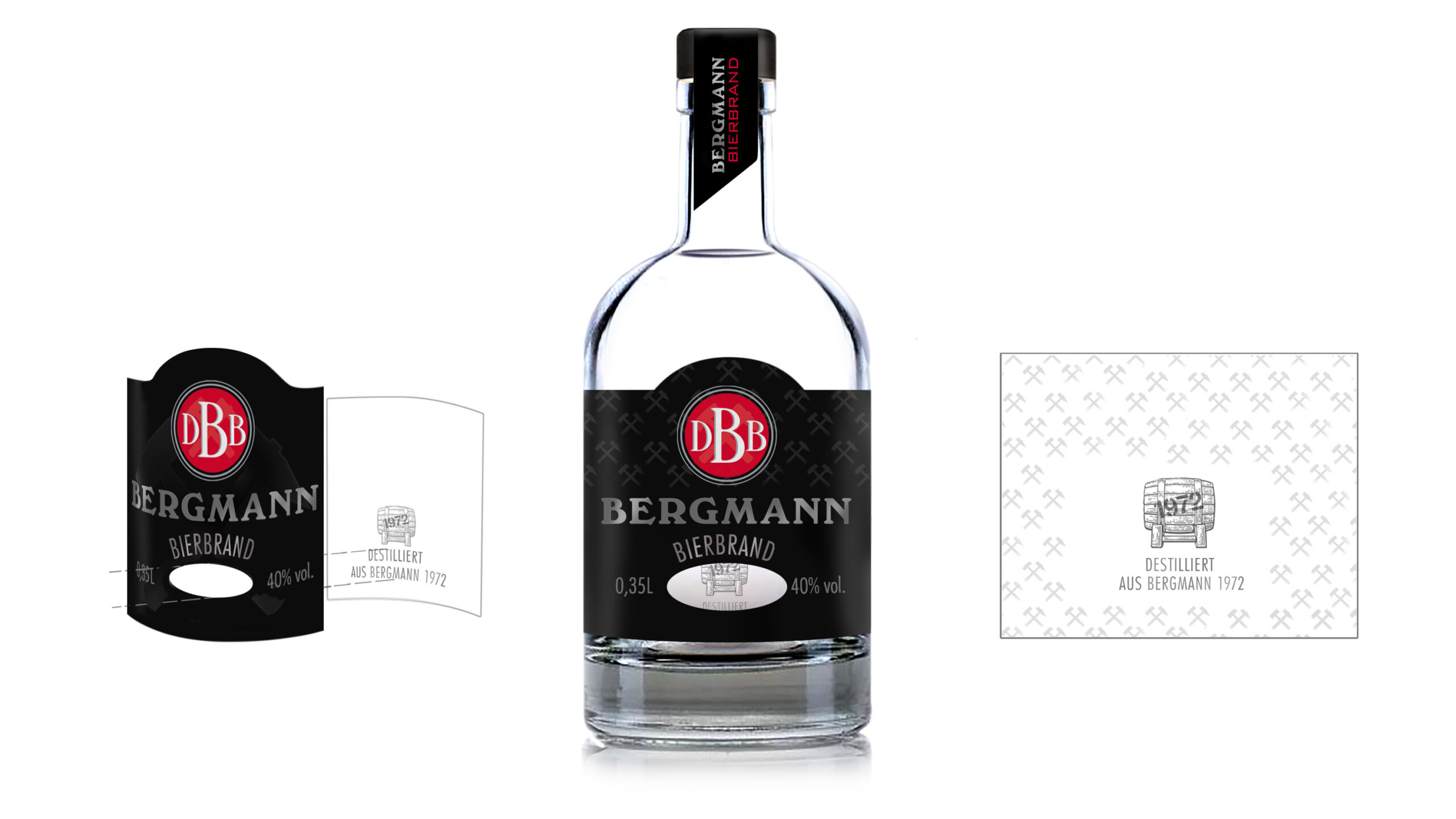 Reminiszenz an das letzte Bergmann-Bier vor der ehemaligen Schließung der Brauerei im Jahr 1972. Das einzig verbliebene Etikettfragment aus dieser Zeit ist in den Relaunch-Entwurf eingearbeitet.