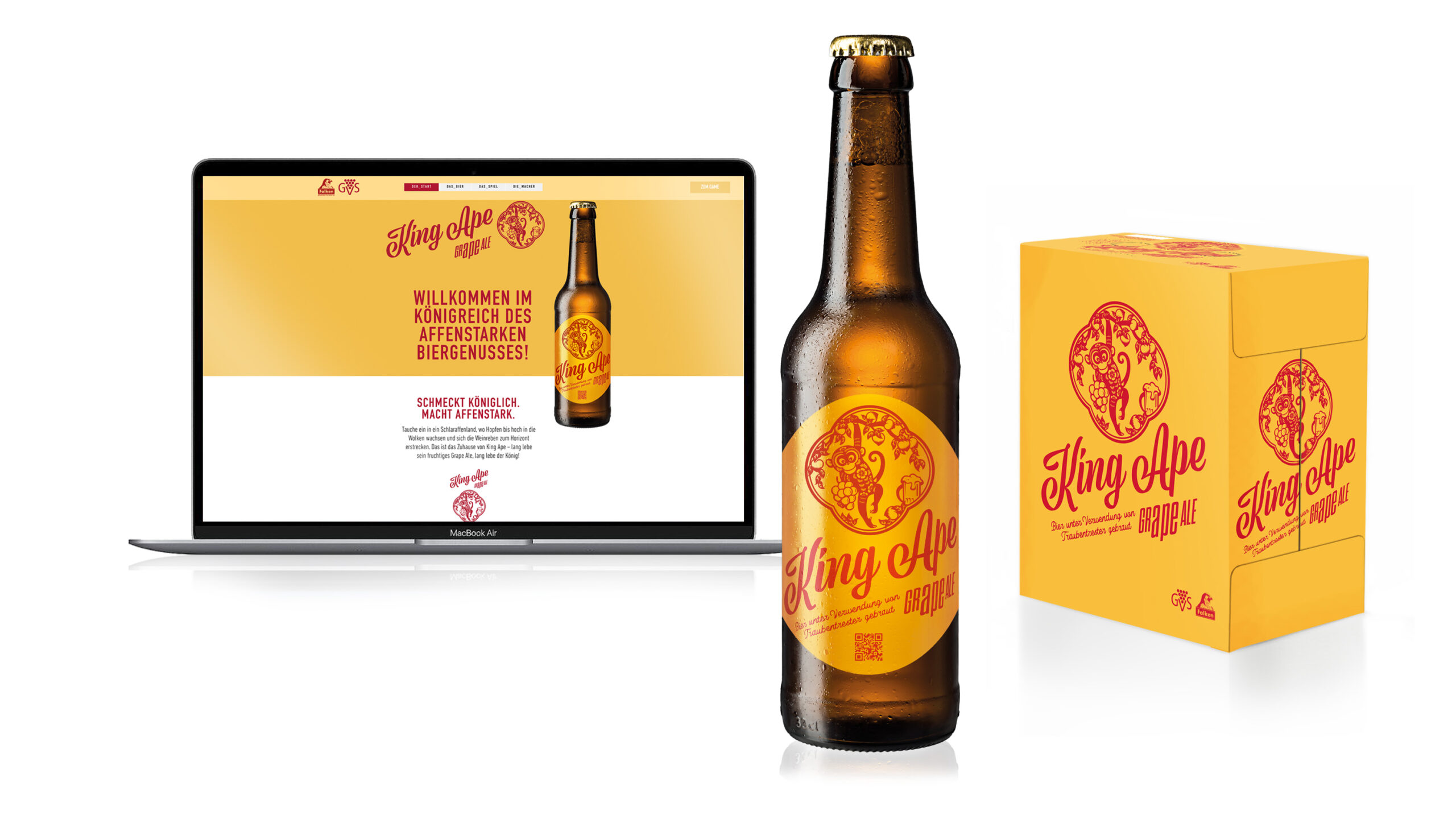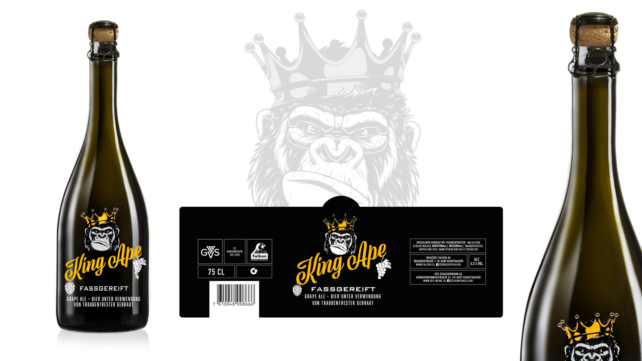 Lang lebe der König. Ein schweizer Biermixgetränk aus Trauben und Ale: fertig waren der Sortenname Grape Ale, der Markenname und das Visual King Ape. Aufgrund des Markterfolges folgte eine gleichnamige Starkbiersonderedtion mit einem Gorilla als Konterfei.