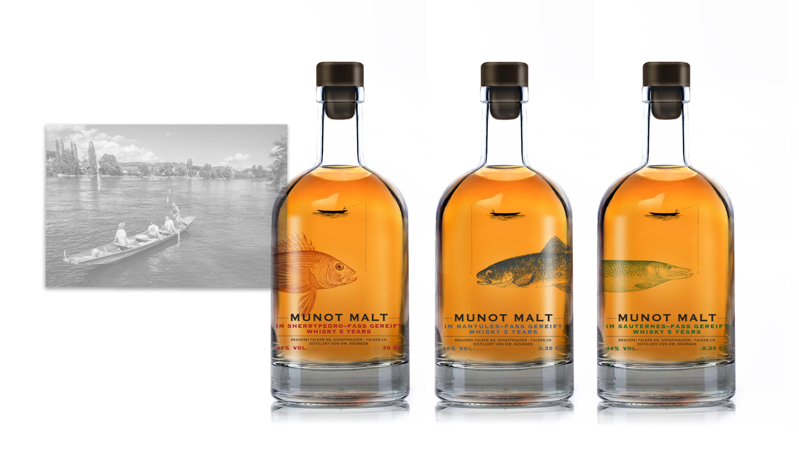 Ein Whisky mit starkem Regionalbekenntnis zur Schaffhauser Heimatregion. Im Fokus stehen der traditionsreiche Last- und Ausflugskahn Weidling und drei populäre Bewohner des Oberrheins.