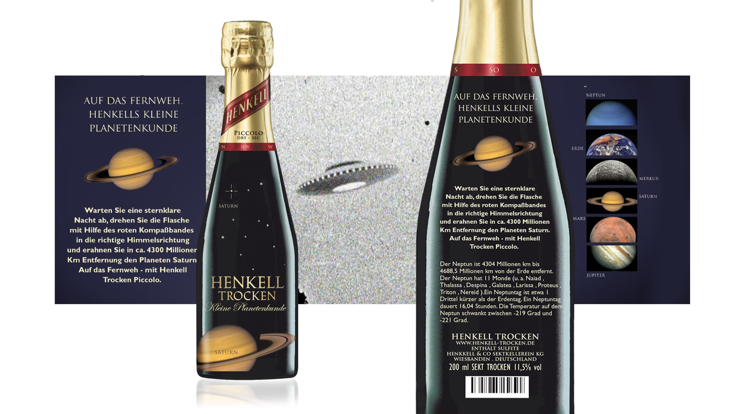 In Anlehnung an den Markenclaim – Auf das Leben – weitet dieser Entwurf den Gedanken in die unendlichen Weiten des Alls aus, auf dass es die dringend gesuchten, jüngeren (irdischen) Kunden zu einer romantischen Sommernacht mit einem Piccolo im Gepäck inspiriert.